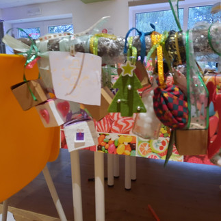 Dans les calendriers "construits" à l'Art-Récré, nous réfléchissons à ce que nous aimons, ce que nous espérons, ce que nous voulons exprimer et nous le matérialisons sous forme de texte, images, et parfois en chocolats 🙂