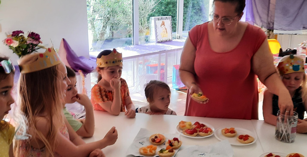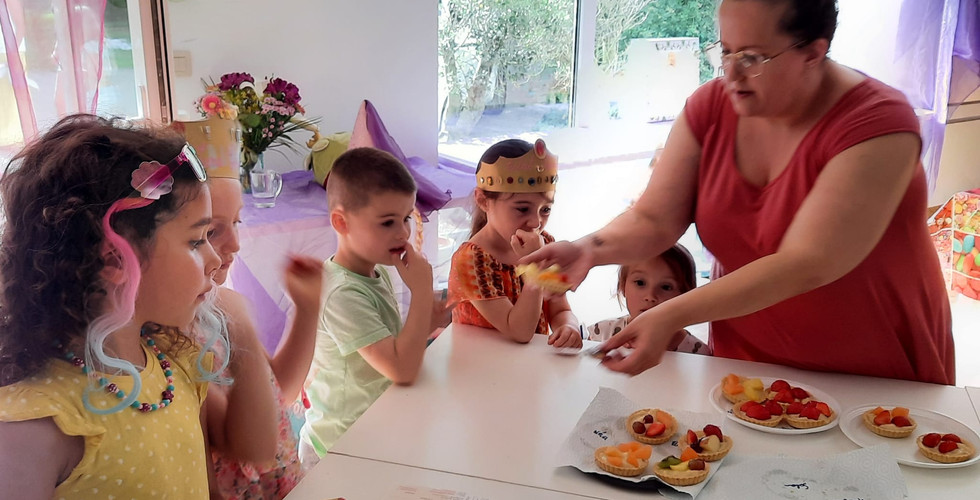 Nos16 Princes et princesses, à tour de rôle, se sont sont mis à table pour concocter une délicieuse tartelette aux fruits et réaliser leur couronnes. Pour découvrir leurs noms de Princes et Princesses, nous nous sommes servis de la magie des cartes.