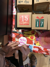 Ensuite les paillettes et tout le matériel étaient au service de la créativité de chacun. Chaque Artiste a pu exprimer ses envies, ses souhaits, ses émotions et les a cachés à l'intérieur des 24 petits cadeaux qui constituent un calendrier de l'Avent unique et personnel.
